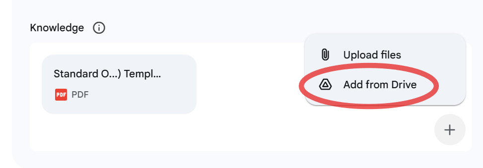 Rather than uploading PDFs, pull in live files from Google Drive using the Knowledge tab. Gemini will always use the most up-to-date version, so you won’t have to re-upload every time you make a change