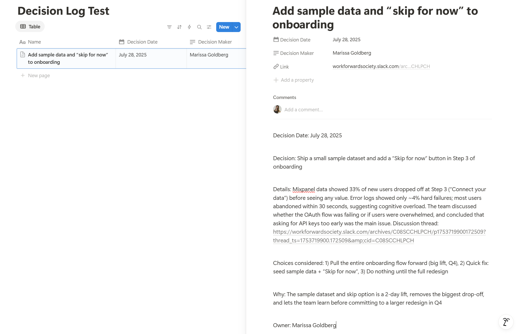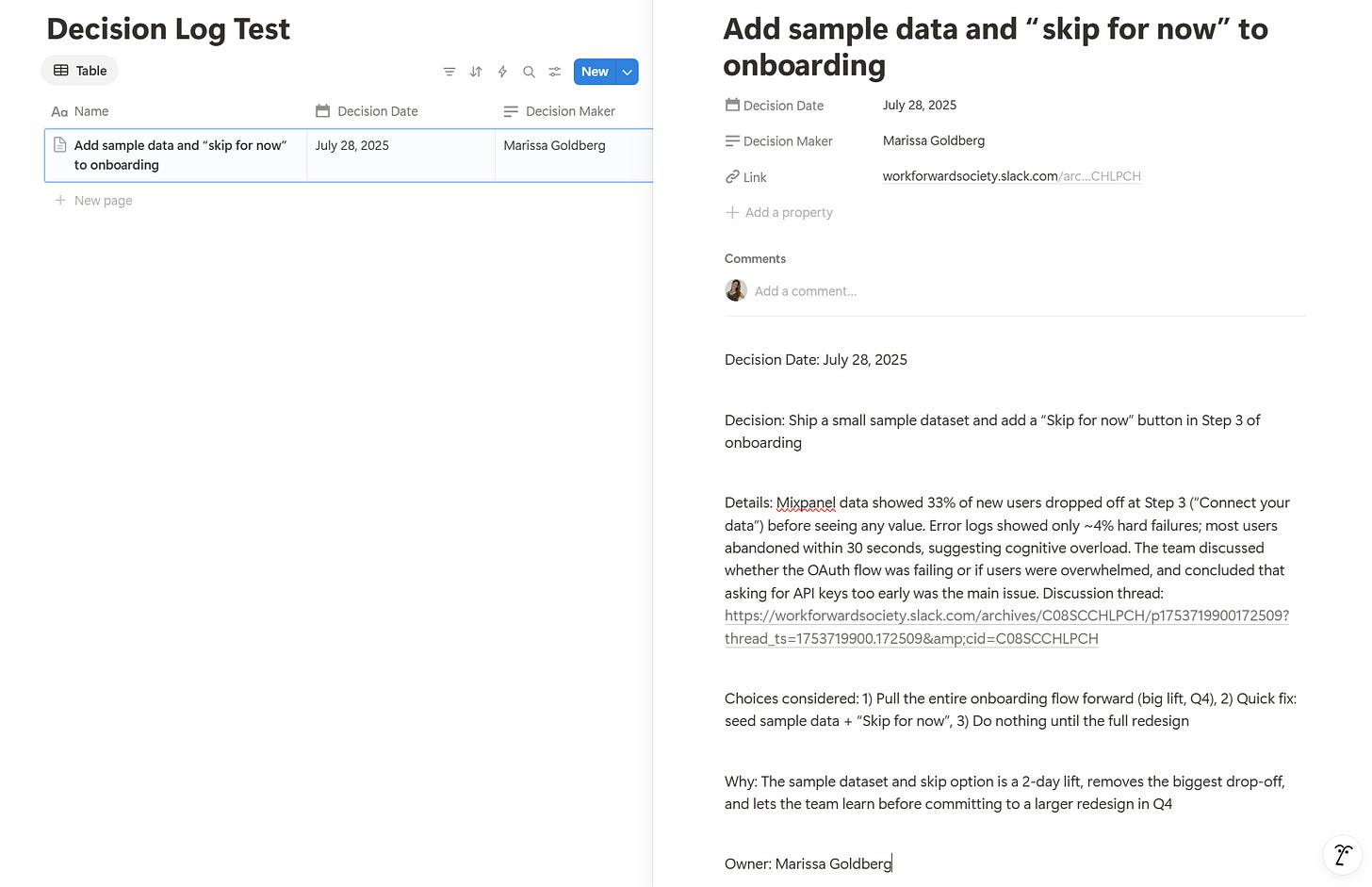 A Notion database for your Decision Log (hereâs ours if youâd like to duplicate it)