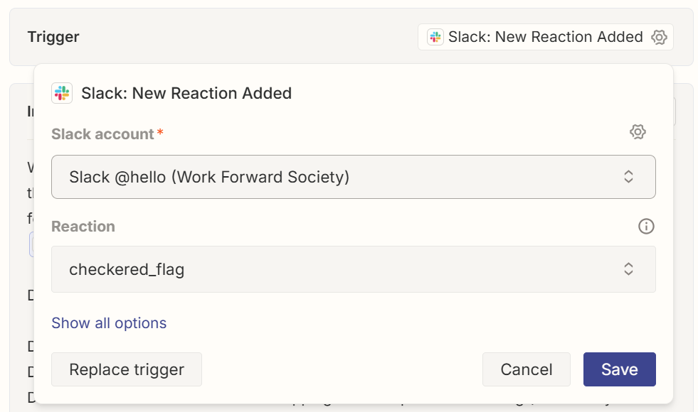 Set the Trigger - In Zapier, choose âSlack: New Reaction Addedâ as the trigger and set the custom emoji youâd like to use (like đ) to signal when a decision is made. Youâll need to set this up in order to test it.