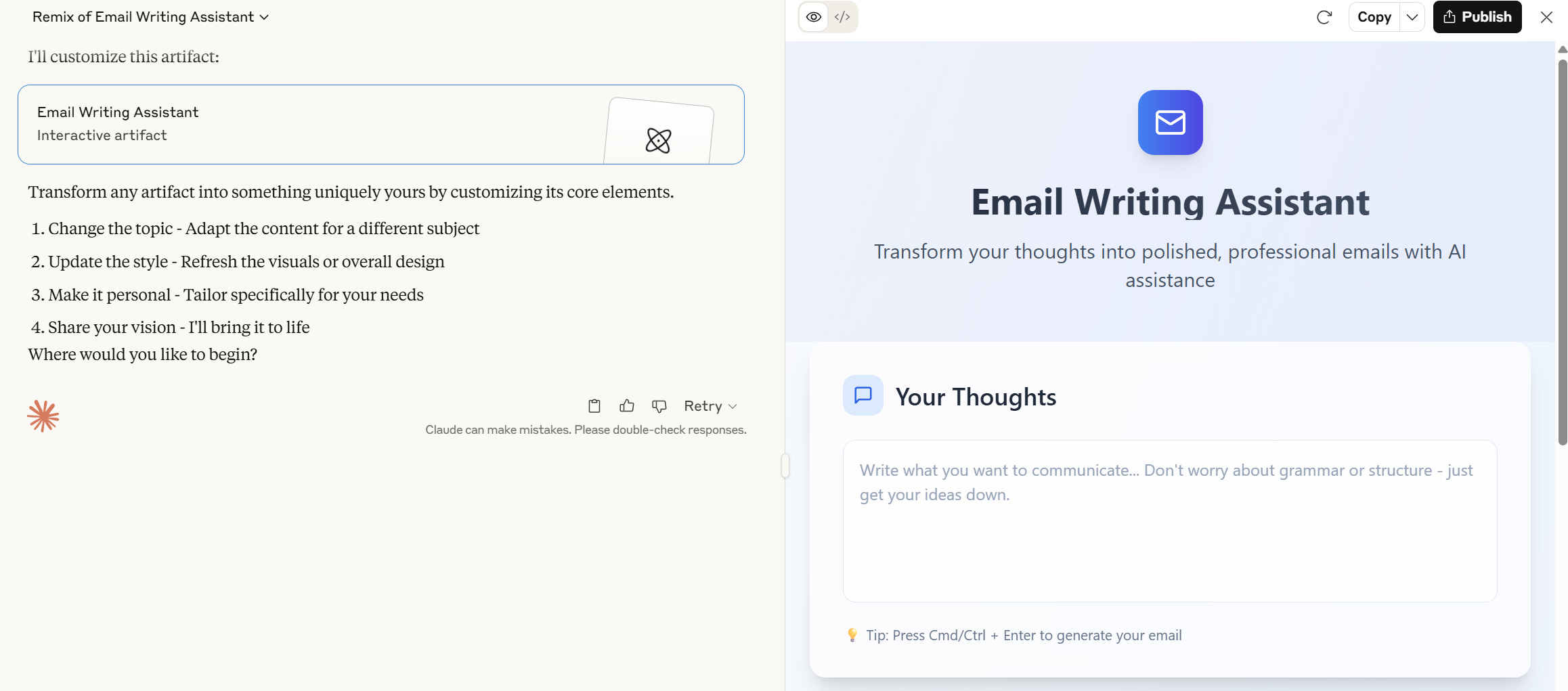 Click “Publish” and share - Once it’s working the way you want, click Publish then use your link whenever you need help drafting a tricky message.
