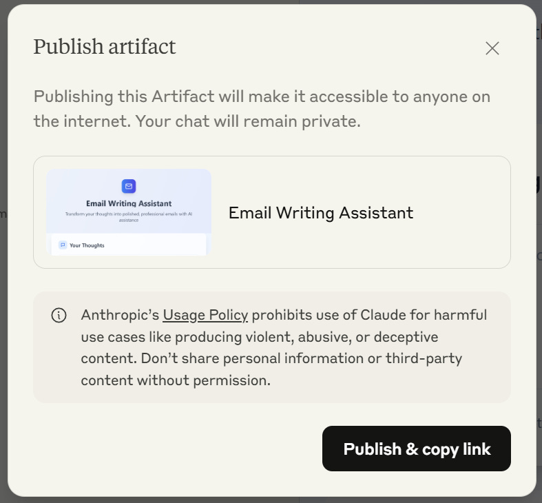 Published links stay live until you unpublish - Anyone with the URL can open and run your Artifact. Double-check before sharing workflows that contain sensitive data, and remember to unpublish when you no longer want it accessible.
